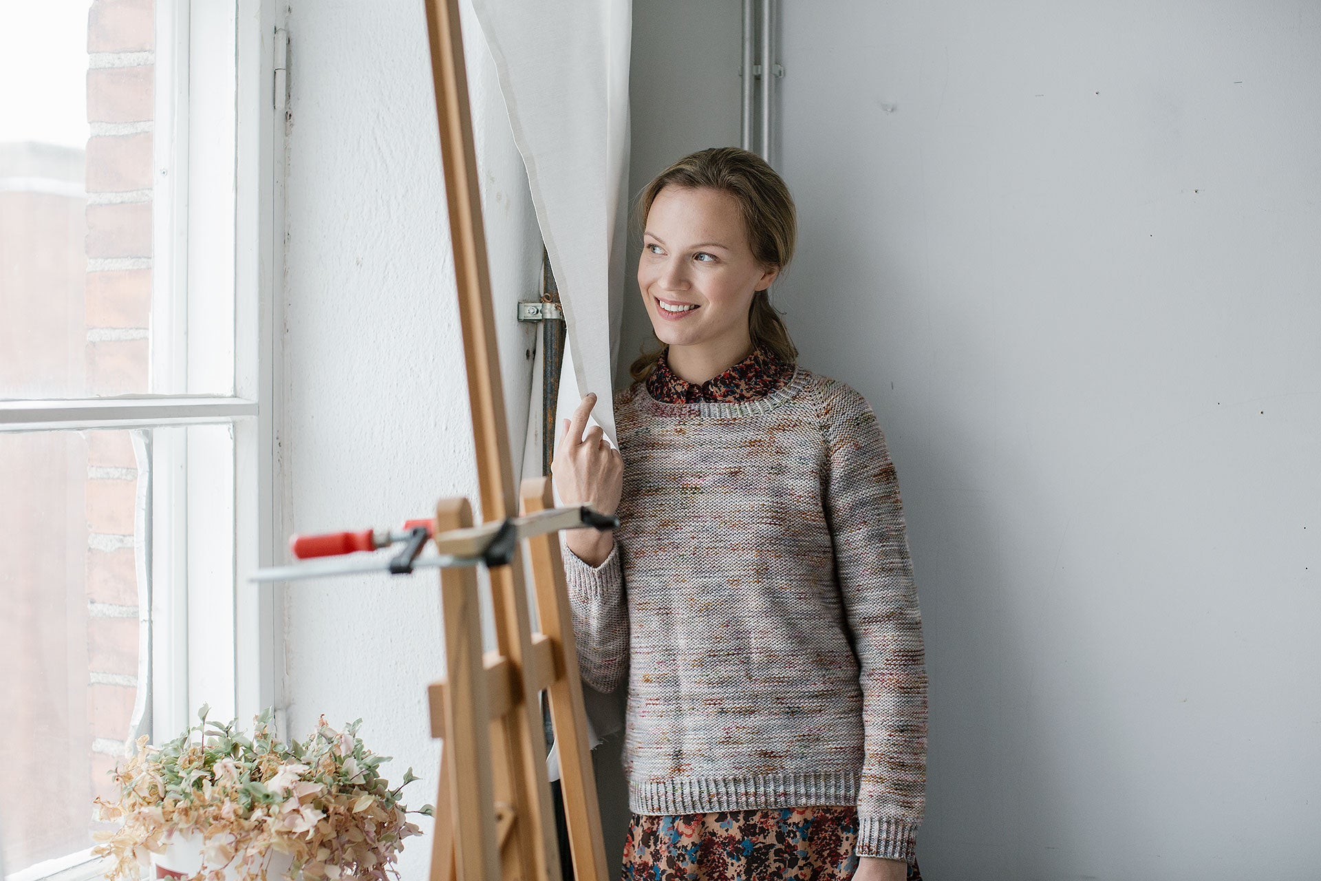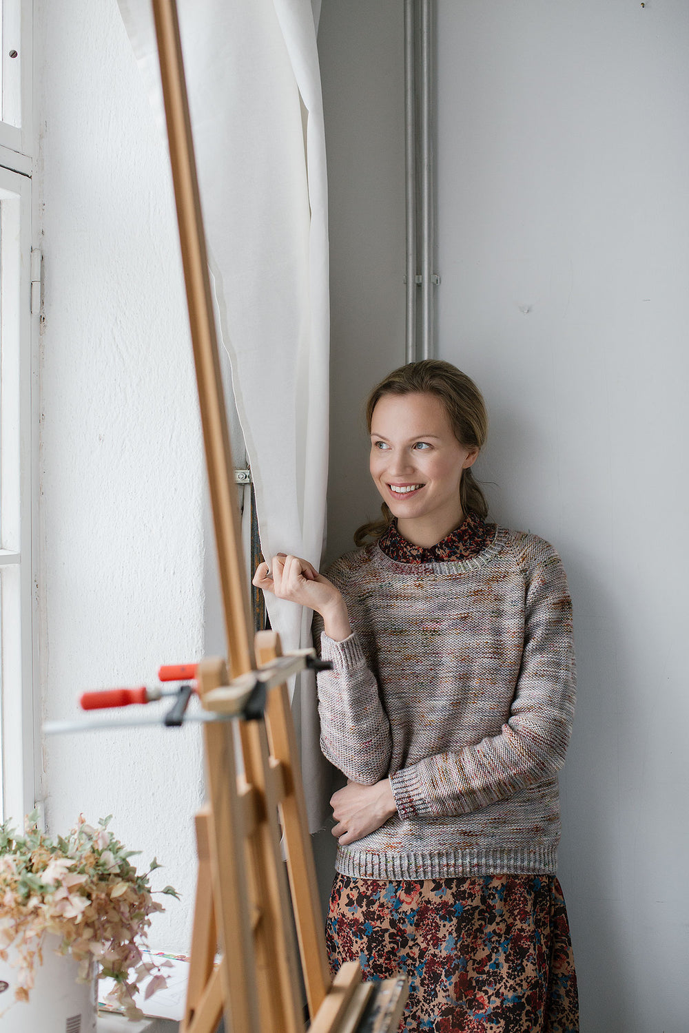 Mon Manet is one of our most popular patterns! Great for beginners as well as for experienced knitters looking for a soothing project. Mon Manet is worked from top to bottom as one piece using circular needles. It is knitted as a regular stockinette stitch sweater and then turned inside out – in the end, the purl side is the right side.