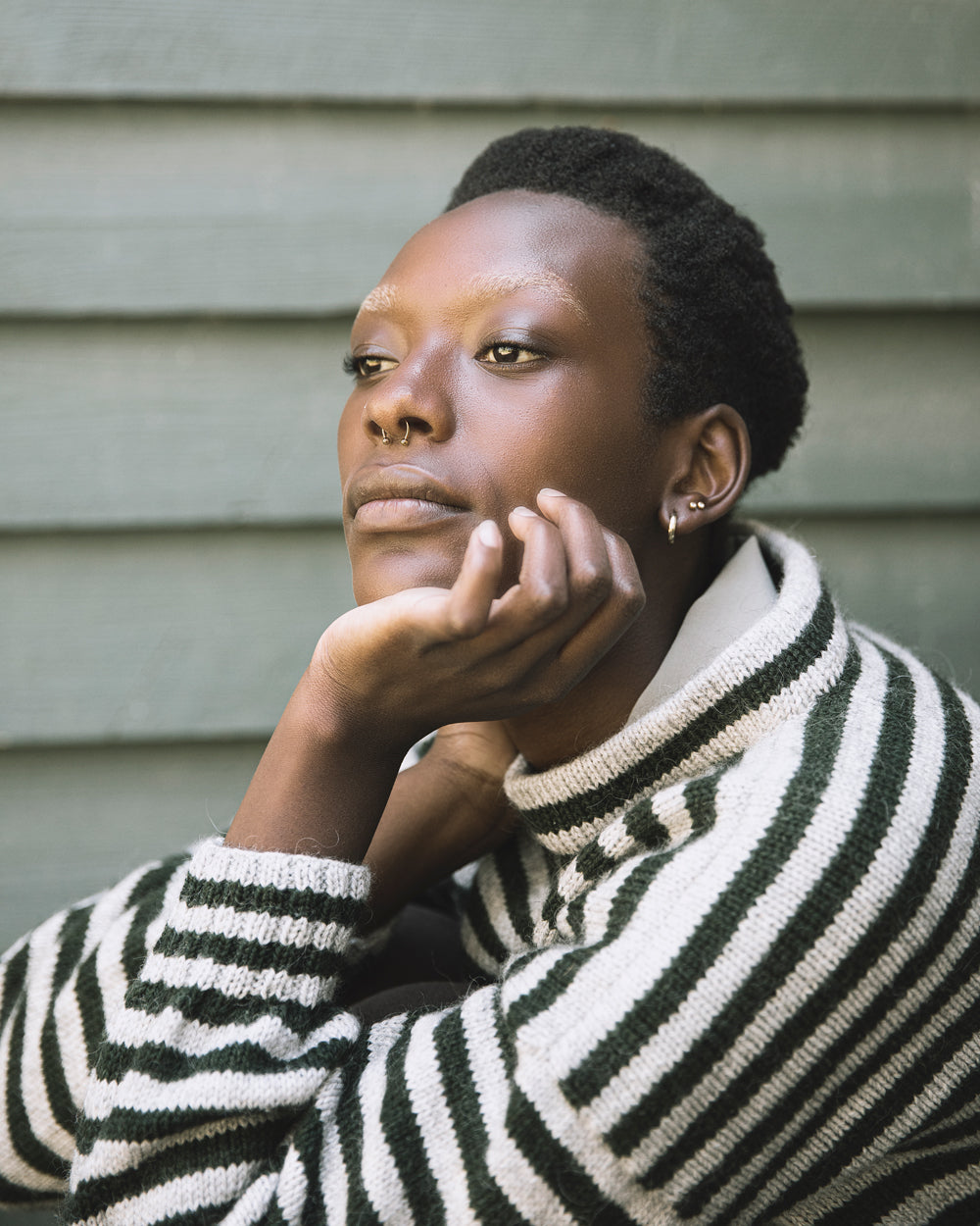 Piilo (hideaway in Finnish) is a relaxed, boxy pullover with dropped shoulders and a neat chimney neck. It is knitted from the top down, mostly in the round (in the beginning, the Back and Front pieces are knitted flat).