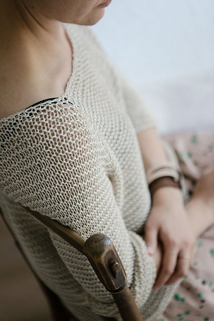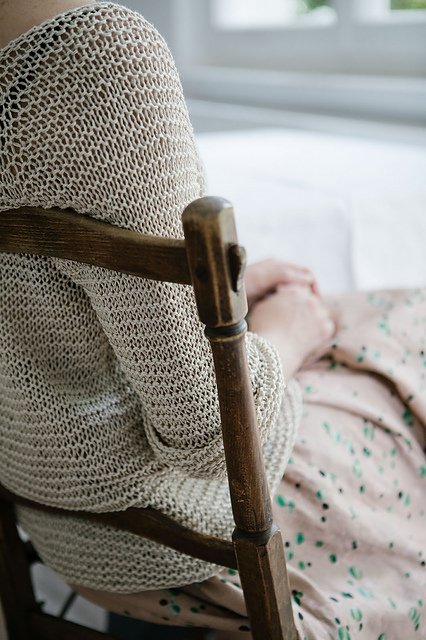 Selja (a Finnish word for ’elder’) is worked from top to bottom as one piece. It is knitted with two strands of yarn held together in garter stitch, which means that every other round is a knit round and every alternate round is a purl round.