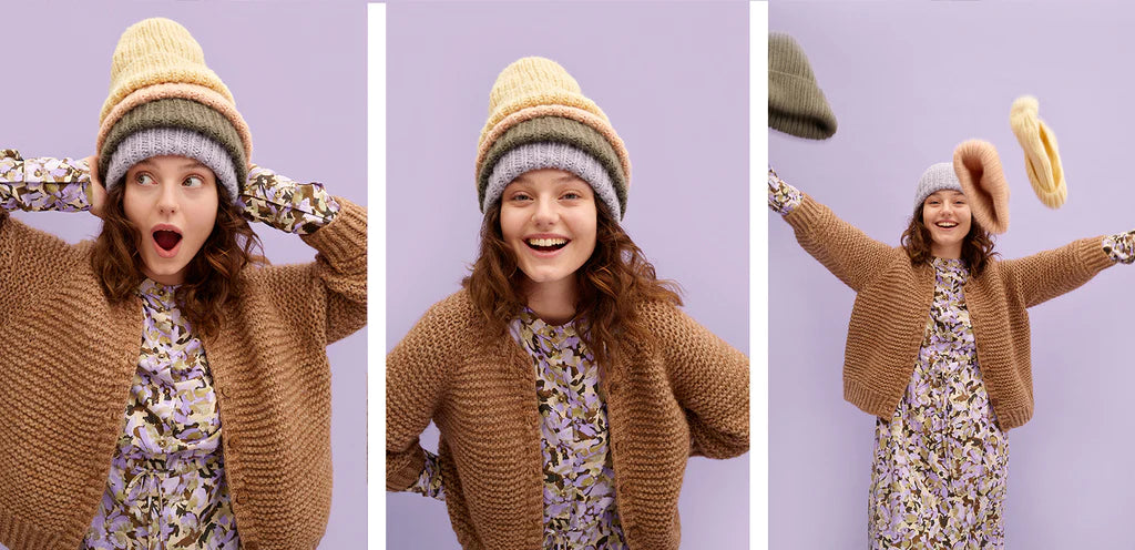 Large needles and Garter Stitch — yes, please! The comfy Lullaby cardigan is knitted top down with shorter sleeves for a lighter look.