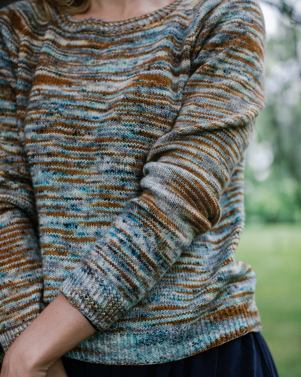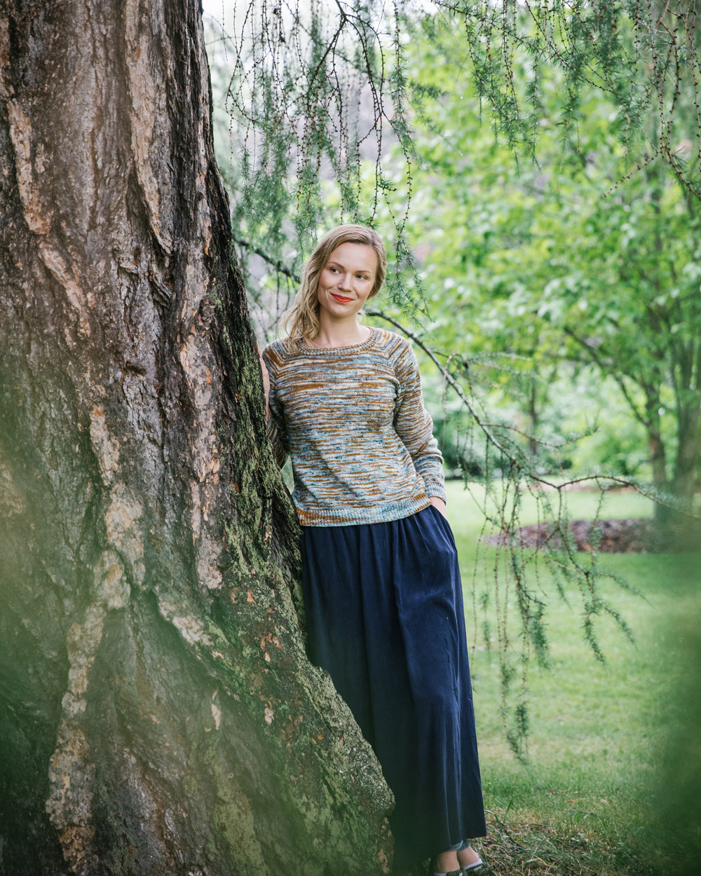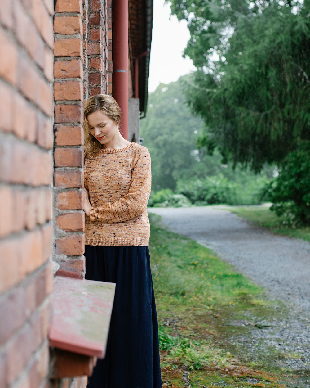 Mon Manet Light neulotaan ylhäältä alas yhtenä kappaleena pyöröpuikoilla. Tässä ohuemmassa versiossa sileän neuleen oikea puoli on paidan oikea puoli (alkuperäisessä, aran-vahvuisella langalla neulotussa Mon Manet'ssa nurja puoli on oikea puoli). Voit kuitenkin valita itse, kumpiko puoli näyttää paremmalta. Jos pidät sileän neuleen nurjasta puolesta enemmän, seuraa tällä värillä tehtyjä muokkausia.