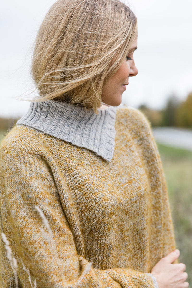 “The knits came to life in Ekkulla, the old schoolhouse that Ninni and Rafael Donner have lovingly restored. The soft October light, large oak trees and our beautiful model, Virpi, made the photoshoot day truly memorable.”