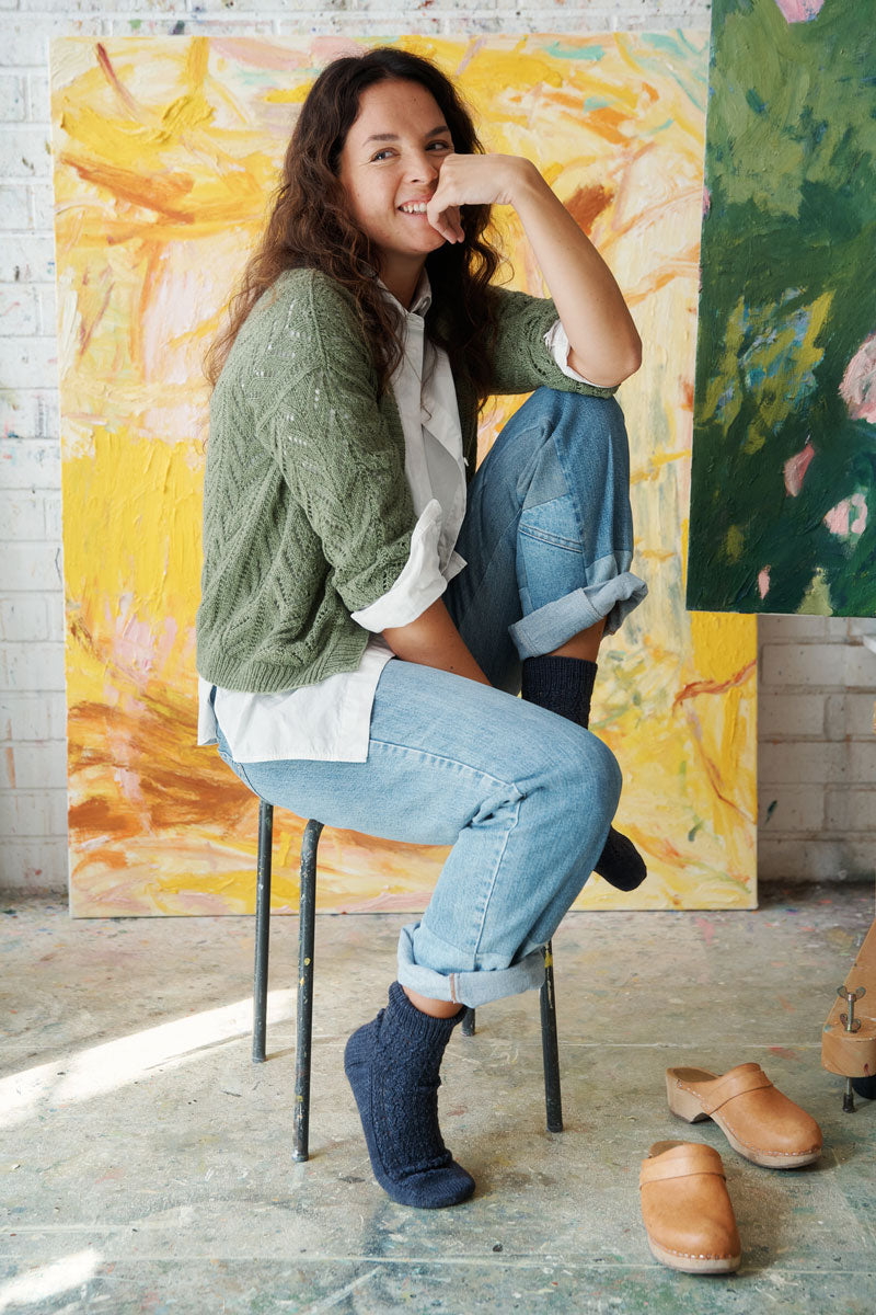 Our lovely spring issue, Laine 24, Brushstrokes, is full of creative energy and soft, joyous spring colours! The photos were taken in an artist’s studio, in all its vibrant, inspiring chaos, and a lush, green park with old deciduous trees and quiet pathways. The knits are delicate, feminine and refined, featuring beautiful textures and interesting techniques.