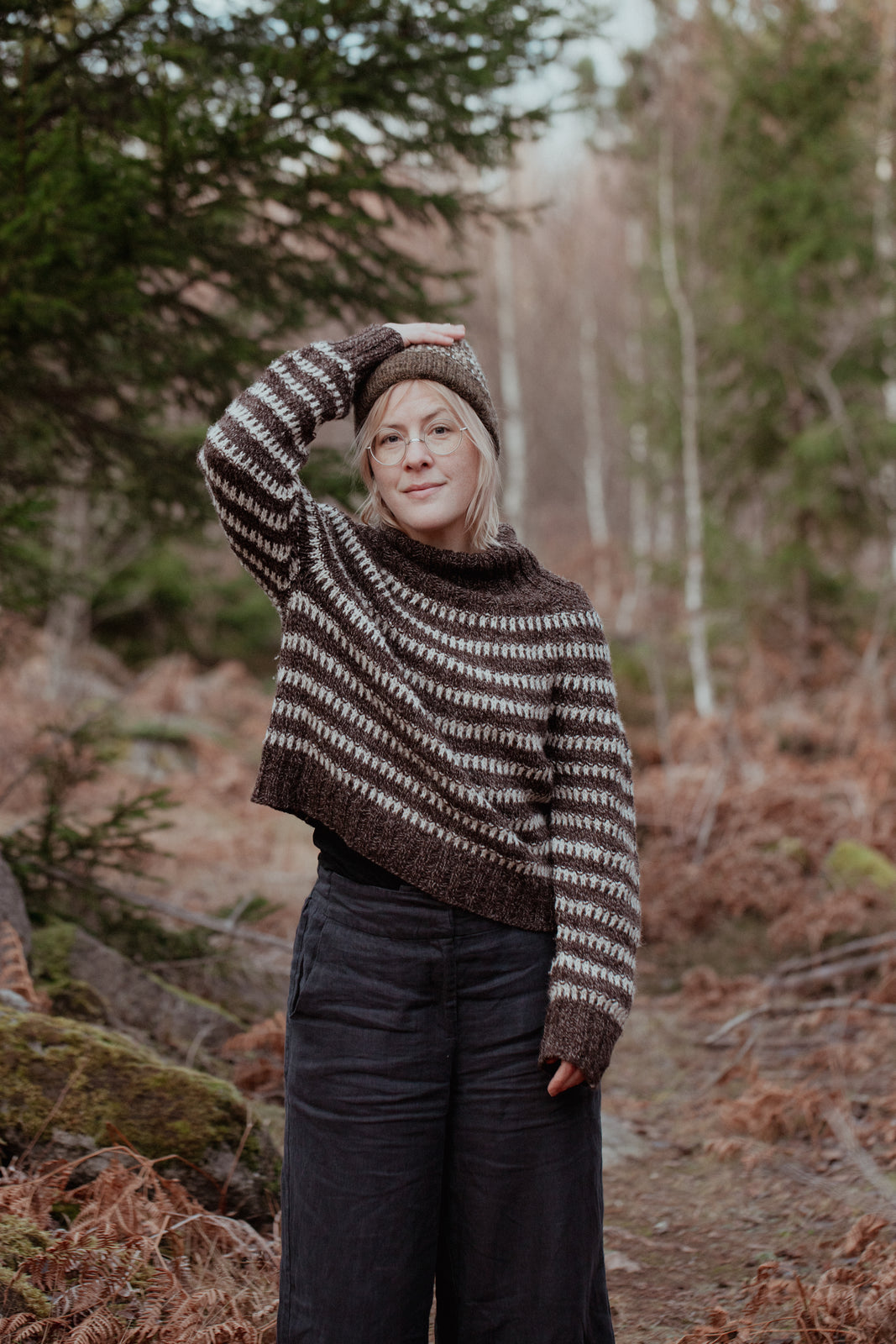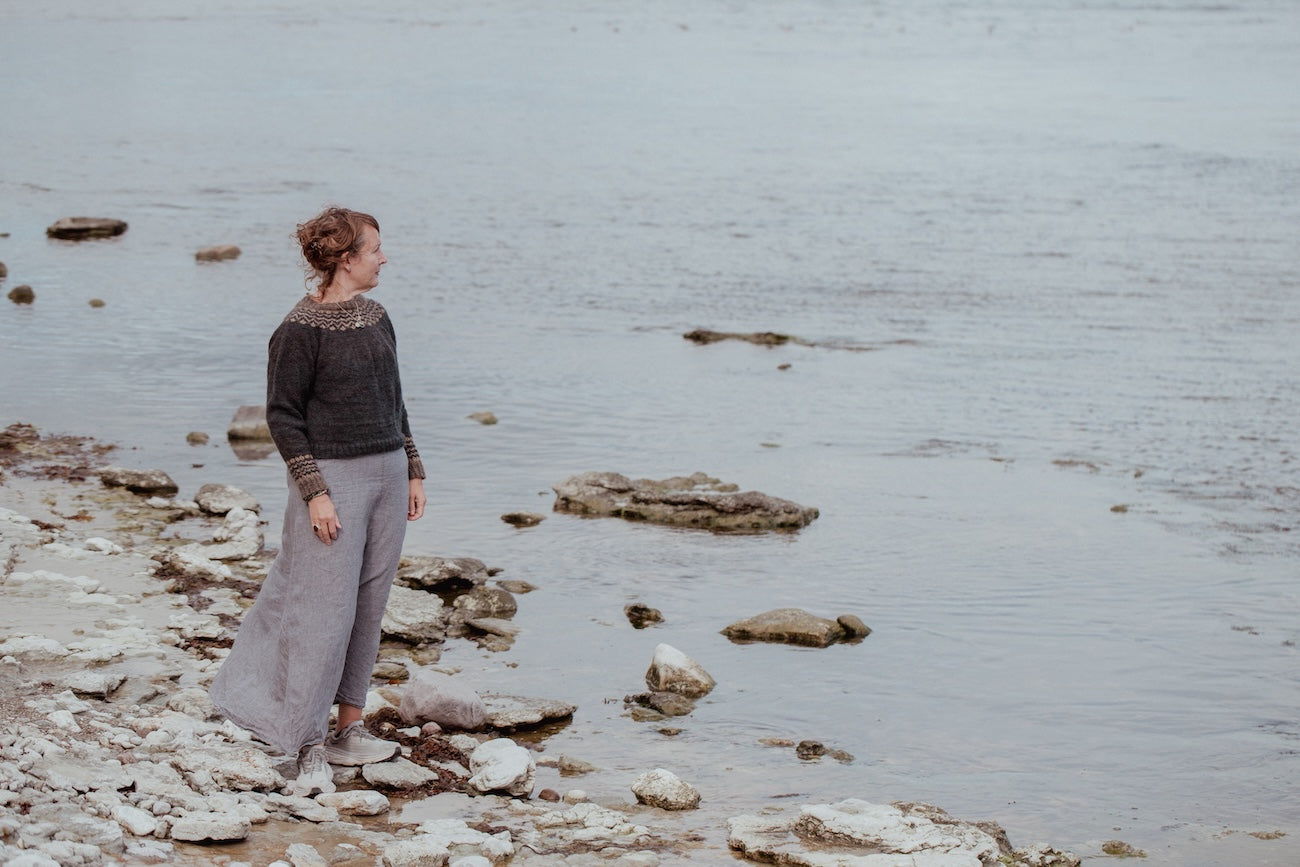 Lotta H. Löthgren is a knitwear designer, writer and yarn-dyer living with her family, dogs and chickens in a village in southeast Sweden, where she also has a yarn shop. As a designer, she loves to translate the natural world into wearable garments. Lotta’s first book, Observations: Knits and Essays from the Forest, was published by Laine Publishing in 2023.